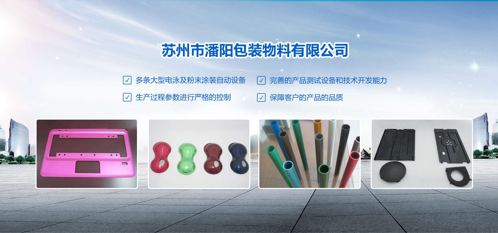 蘇州市潘陽包裝物料有限公司創建于2002年4月。坐落于美麗的蘇州相城。占地面積8000㎡,目前公司人員約150人,技術及管理人員約30余人。 專業從事彩色、黑色粉末涂裝及電泳等表面處理加工服務。公司現有多條大型電泳及粉末涂裝自動設備,并有完善的產品測試設備和技術開發(fā)能力,對生產過程參數進行嚴格的控制,從而保障了客戶的產品的品質。公司已通過TS16949、ISO14000體系認證,已經與亞太和歐美地區的廣大客戶建立緊密的業務合作關系。